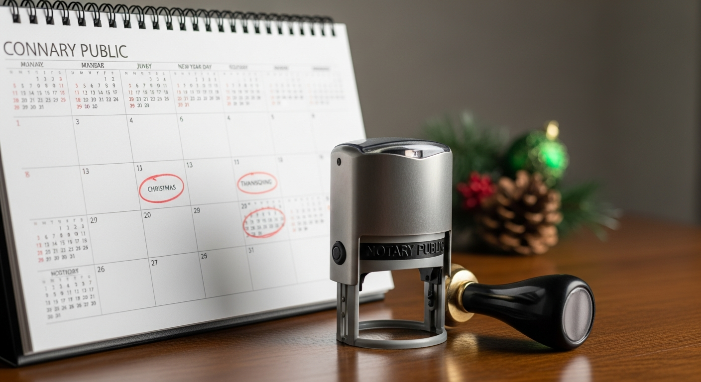 Don't let a holiday weekend delay your important paperwork. Check our schedule for Thanksgiving, Christmas, and New Year's notary availability.